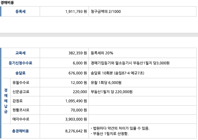 지지옥션에는 총매입가, 경매비용 등에 대해서 알려준다. 그렇기 때문에 계산을 수월하게 할 수 있었다. 다만, 사이트 이용이 유료다. 다만, 하루는 공짜니까 이용해보면 좋을꺼같다. 어쨌든, 취득세, 관리 미납비 등 필수 금액을 빼고 우리의 시세차익을 고민했을 때 1.5억을 잡고 시세를 보수적으로 8.5억으로 잡아서, 7억정도에 매수를 시도해보고자 했다.