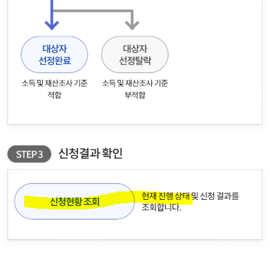 문자를 받고 링크를 타고 들어가서 신청현황 조회(간편인증 또 해야함)를 누른다.
