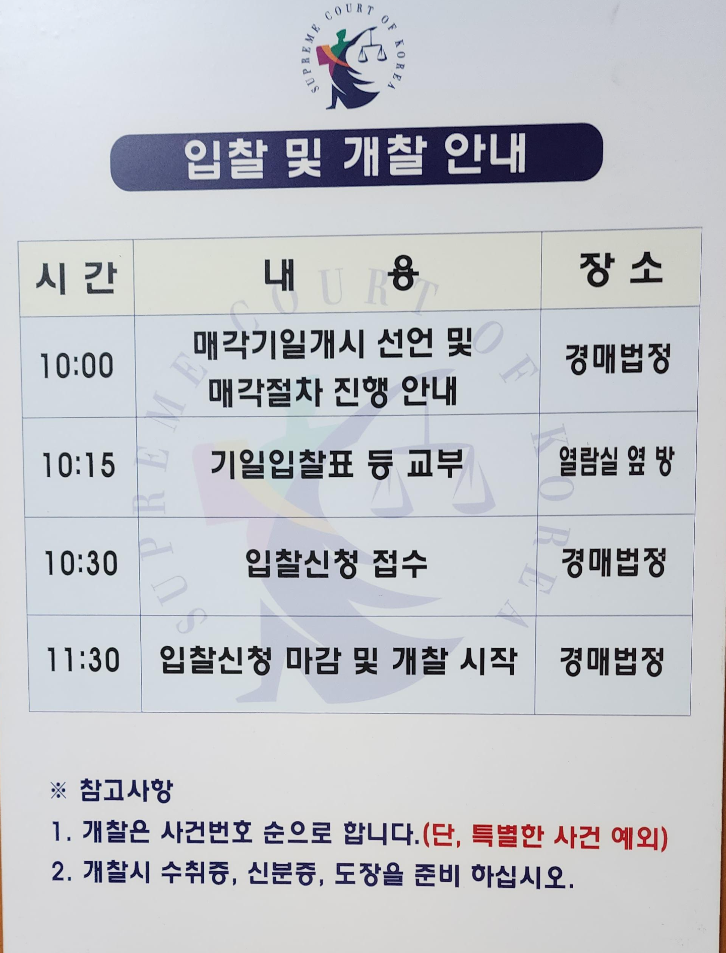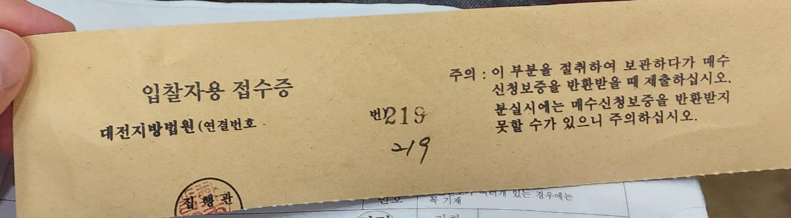 개찰 뒤에 낙찰자 빼고 나머지 분들은 접수증이 있어야 보증금을 돌려받을 수 있으시니, 꼭 잘 쥐고 계세요 ㅎㅎ
