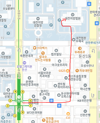 1편의 사전준비 편을 이어서 2편인 실제 입찰하러 간 후기 위주로 간단히 작성할 예정입니다. 저는 자차를 이용하지 않고 걸어서 경매 장소인 대전지방법원으로 갔었는데요. 막상 도착을 하니 어디로 가야 하는지 헷갈렸습니다. 그에 대한 상세 루트를 작성해 보고, 입찰하는 과정을 조금 자세히 써보겠습니다!