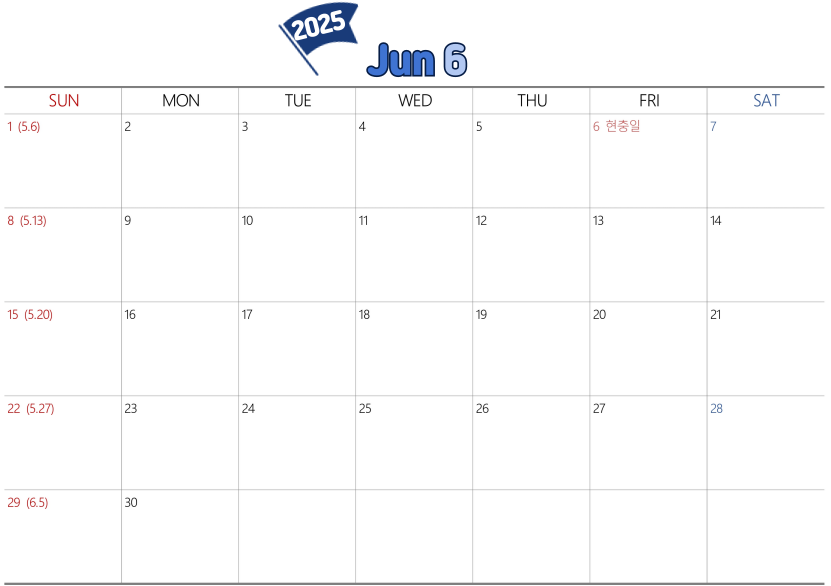 2025년 6월 달력 다운 PDF 공유 및 다운로드 무료 배포(축제 정보 등)