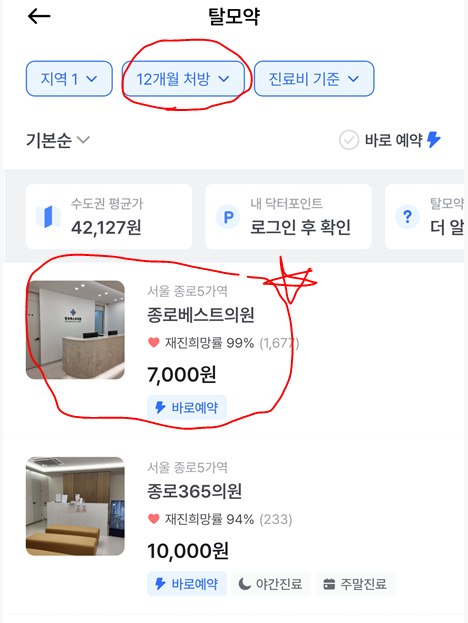 - 종로베스트의원(12개월 기준) 진료비가 7천원입니다.