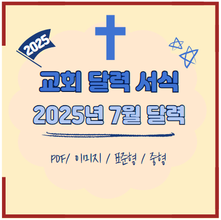 2025년 7월 교회 달력 다운 PDF 무료 다운로드(교회 달력)