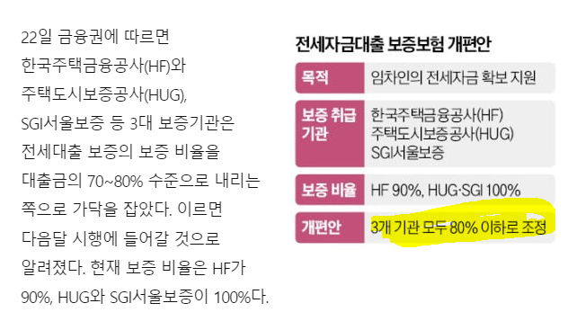 - 최근 전세자금대출 보증보험 한도가 축소됨